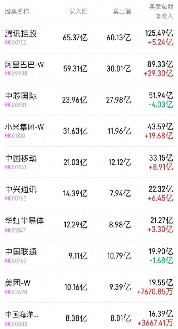 此外,小米集团-W(01810)、中海油(00883)分别获净买入22.7亿、3667万港元。而腾讯(00700)遭净卖出1393万港元。